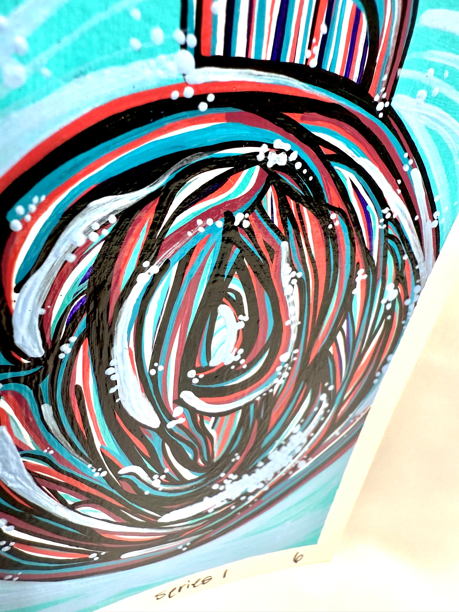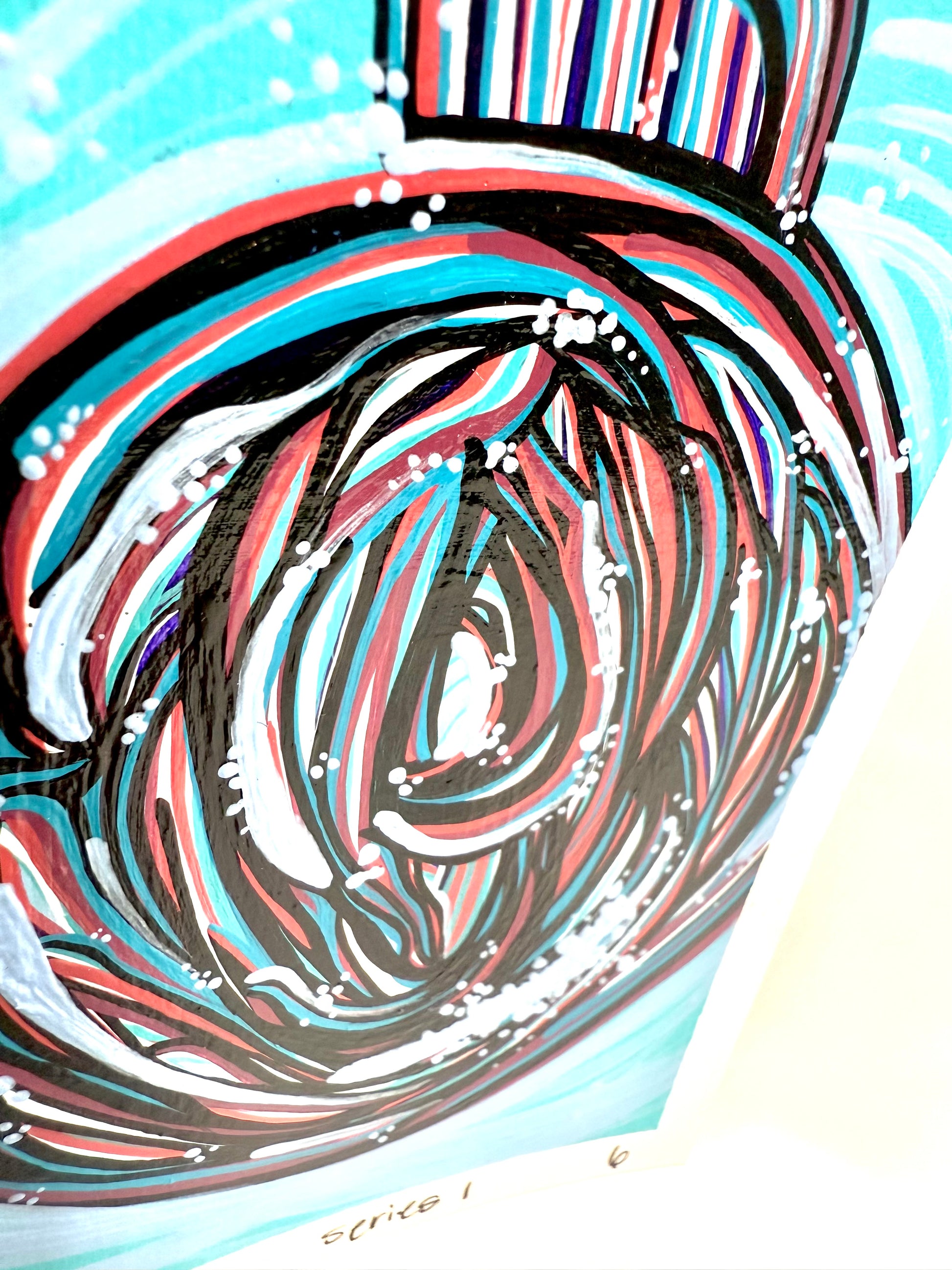 One of a kind, hand painted original postcard with high quality acrylics on cold press paper, signed and numbered in archival ink, and finished with gloss varnish. This item is limited edition and never printed or reproduced.