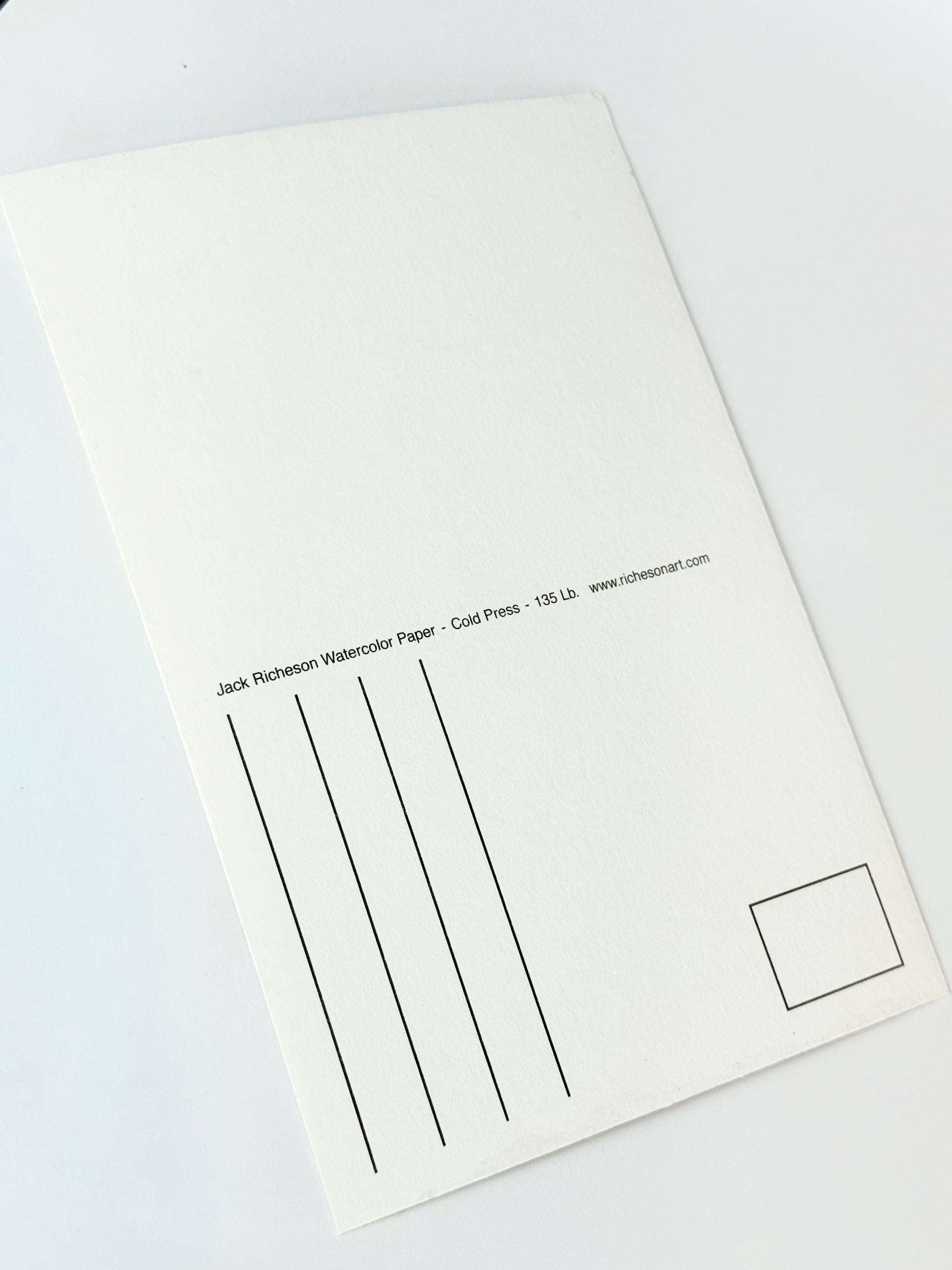 One of a kind, hand painted original postcard with high quality acrylics on cold press paper, signed and numbered in archival ink, and finished with gloss varnish. This item is limited edition and never printed or reproduced.