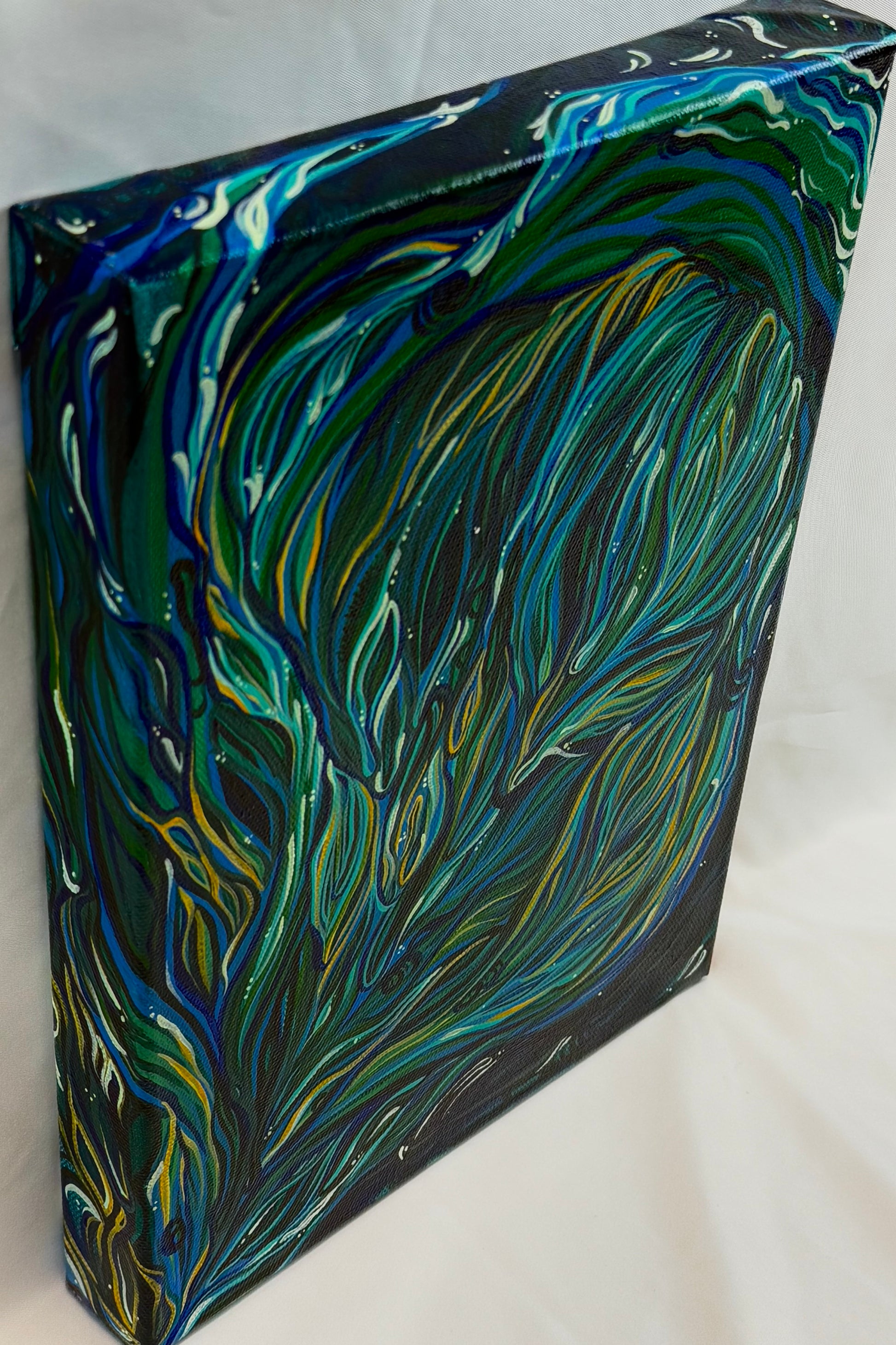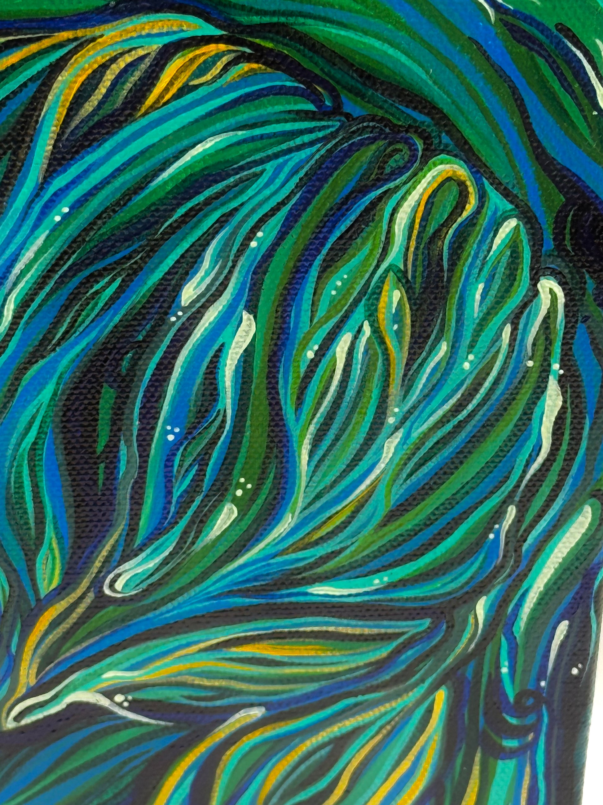 9” x 13” original acrylic painting on canvas, 2" gallery wrap with polycrylic gloss protective finish, unframed. Hang ready, wire installed.
