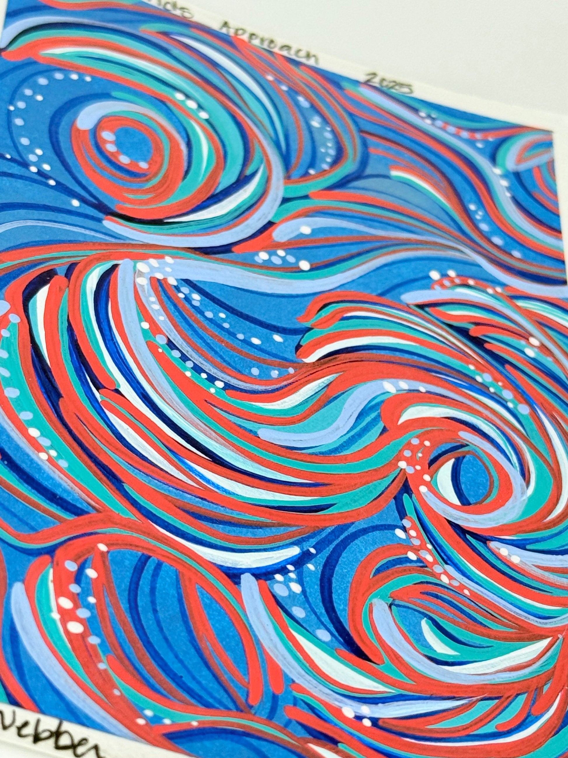 One of a kind, hand painted original postcard with high quality acrylics on cold press paper, signed and numbered in archival ink, and finished with gloss varnish. This item is limited edition and never printed or reproduced.